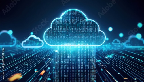 Cloud with binary symbols representing data structures in a digital environment and cloud computing