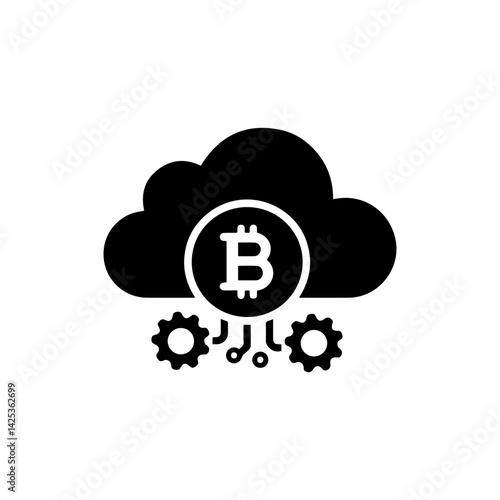 Cloud with Bitcoin Logo and Gears Representing Cloud Mining Services