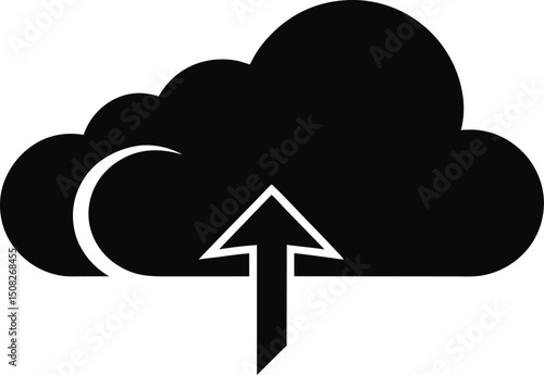 Cloud With Upward Arrow Silhouette Vector Illustration