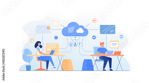 Cloud-Based Collaboration with People Working Remotely in Digital Illustration