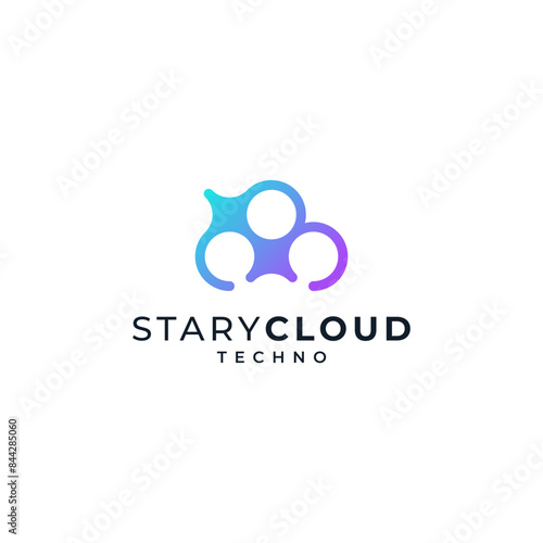 clouds and stars for a technologically advanced data storage cleaning logo
