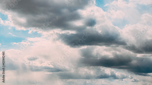 Cloudy Sky With Fluffy Rain Clouds. Natural Background
