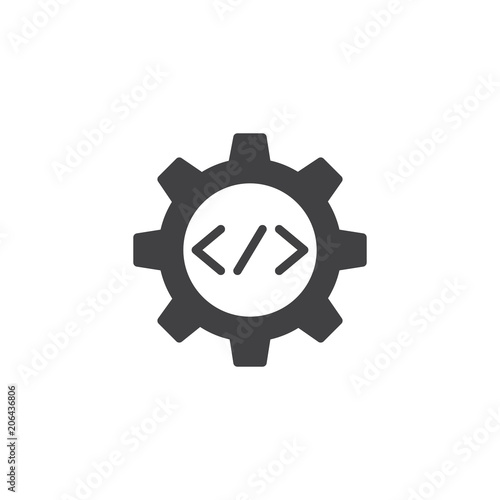 Code Gear vector icon. filled flat sign for mobile concept and web design. Coding settings solid icon. Symbol, logo illustration. Pixel perfect vector graphics