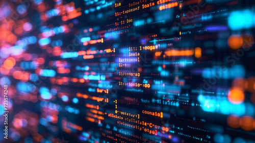 Code, internet and big data connection for cloud storage, artificial intelligence and coding. Blue, matrix and network connectivity for ai algorithm, quantum computing and communication background