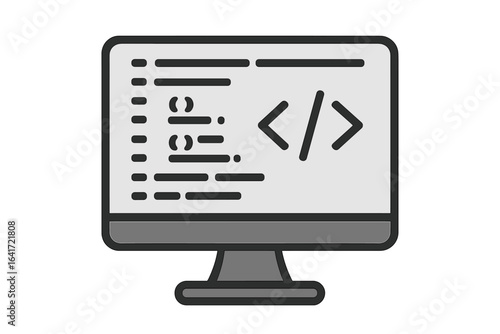 Code on computer screen vector illustration, programming script on digital display, software development concept, transparent background technology design, coding workflow graphic