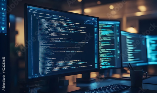 Code on Computer Screens in a Modern Workspace