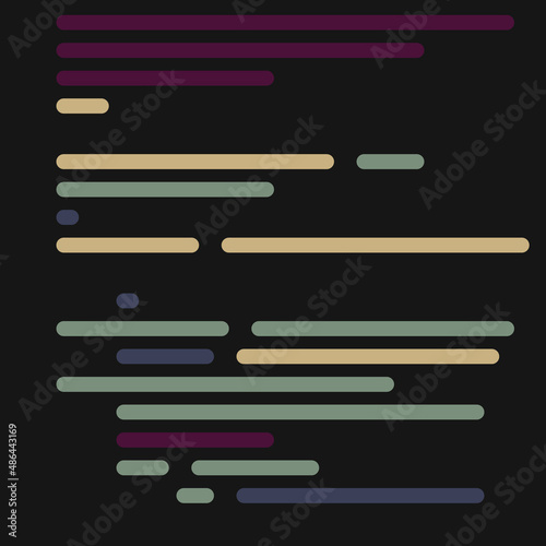Code on screen vector illustration, flat cartoon coding lines simulation
