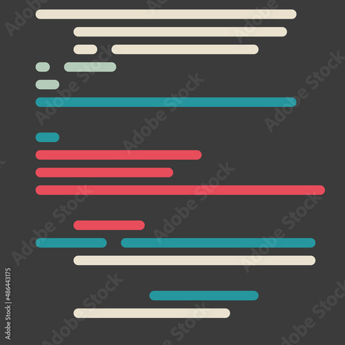 Code on screen vector illustration, flat cartoon coding lines simulation