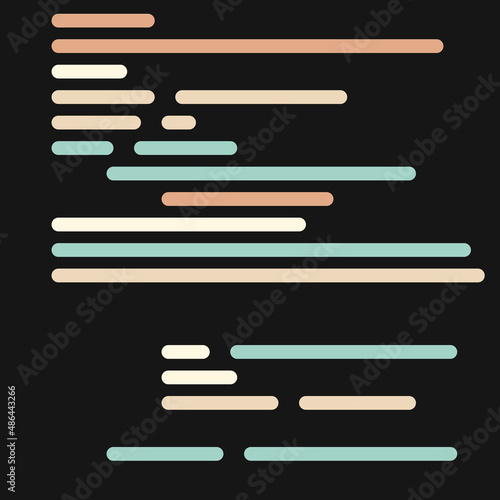 Code on screen vector illustration, flat cartoon coding lines simulation