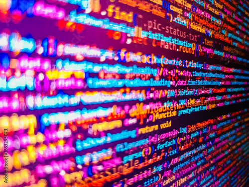 Coding hacker concept. Abstract background of computer source code. HTML and CSS code developing screenshot. Computer program, software background. Web site codes on computer monitor