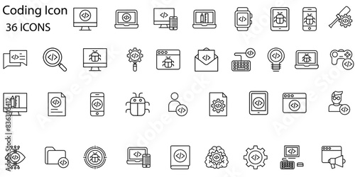 Coding icon set. Software development icon collection. Programmer and developer symbol vector illustration.