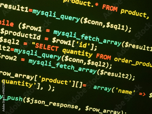 Coding programming source code screen. Abstract technology background. Cyber attack or security concept. Hacker monitor program. Software development