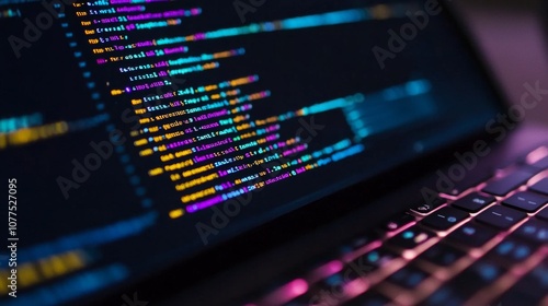 Coding with colorful syntax highlighting on a laptop during late-night programming session