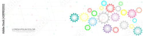 Cogs and gear wheel mechanisms. Hi-tech digital technology and engineering. Abstract technical background.