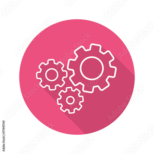 Cogwheels flat linear long shadow icon
