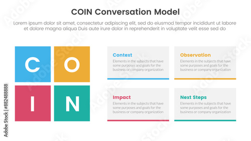 COIN Conversation Model infographic 4 point stage template with rectangle box combination for slide presentation