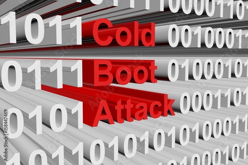 Cold boot attack in the form of binary code, 3D illustration