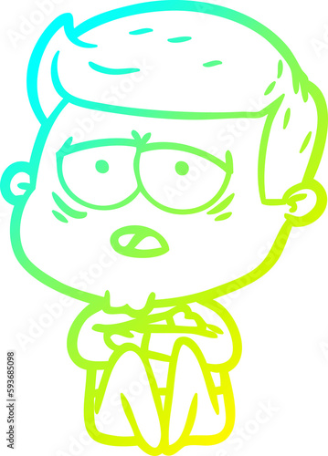 man, male, stressed, sleepy, father, exhausted, cartoon, cold, line, gradient, spectrum, drawing, illustration, retro, doodle, freehand, free, hand, drawn, quirky, art, artwork, funny, character