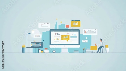 Collaborative project management on digital platform, flat design, front view, tech theme, animation