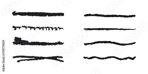Collection charcoal lines. Set of different doodle elements. Brushes for underline note. Vector set