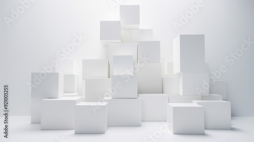 Collection of blocks of various sizes, arranged in a seemingly random pattern. Depth and complexity. Modern art, architecture visualization, complexity and organized chaos. Cubes Background.