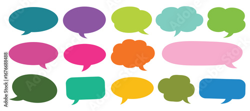 Collection of colorful speech bubbles in various shapes isolated on white background