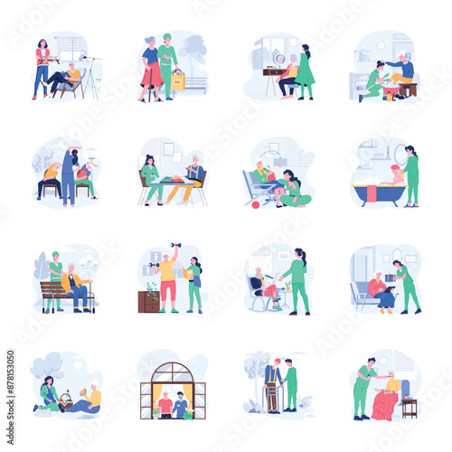 Collection of Elderly Care Flat Illustrations