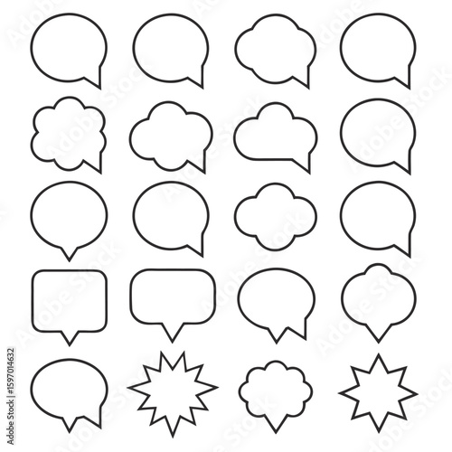Collection of stylized storm drawn clouds in silhouette set vector thought bubbles