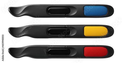 Color-coded tire lever set for easy organization in a cycling enthusiast's home workshop.