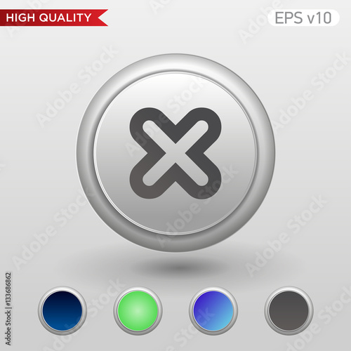 Colored icon or button of cross or delete symbol with background