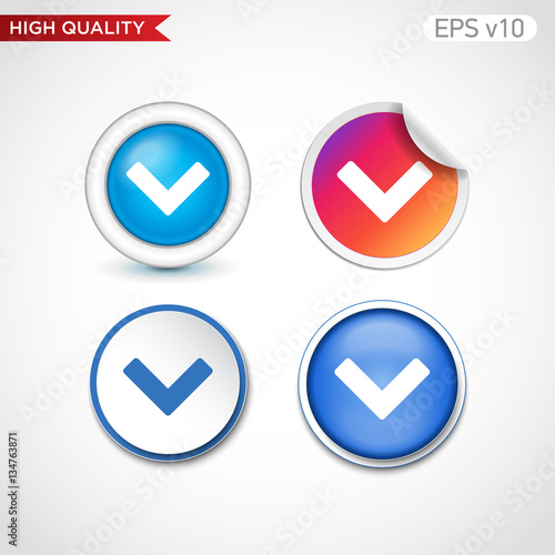 Colored icon or button of down arrow symbol with background