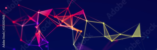 Colored polygonal structure. Beautiful illustration with connected dots and lines. Digital network background. 3D
