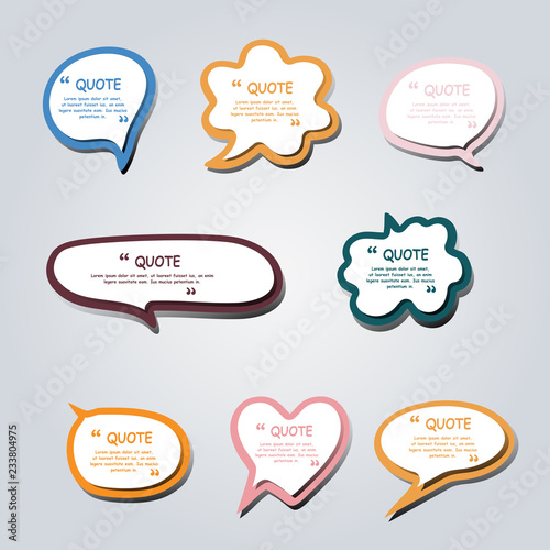 Colored text bubble set speech box vector template design