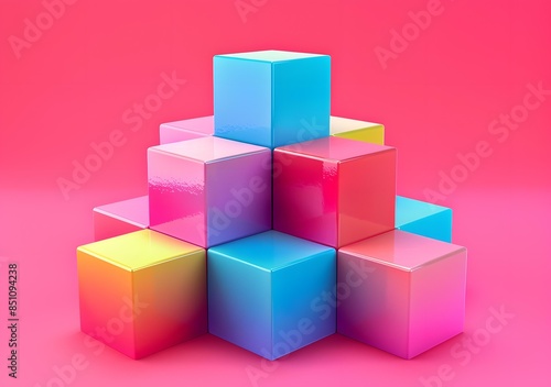 Colorful 3D cubes on pink background