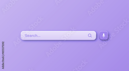 Colorful 3d search bar template. Internet browser engine with search box, address bar and text field. UI design, website interface element with web icons and push button. Vector illustration