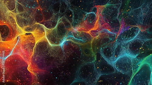 Colorful Abstract 3D Mesh Network with Interconnected Lines and Data