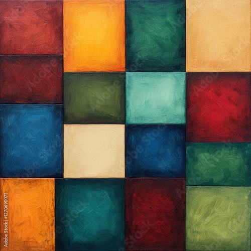 Colorful Abstract Composition with Geometric Shapes and Textures