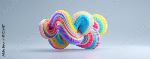 Colorful abstract design featuring intertwined 3D shapes in vibrant hues.