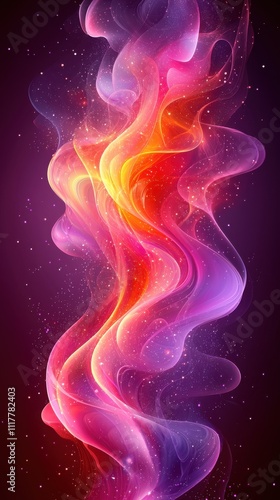 Colorful abstract swirl with vibrant hues of pink, orange, and purple against a dark background