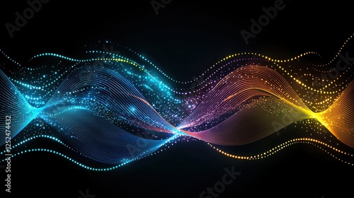Colorful Abstract Wave Pattern with Glowing Lights on a Dark Background for Graphic Design Projects