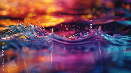 Colorful and dynamic water surface with splashes and ripples
