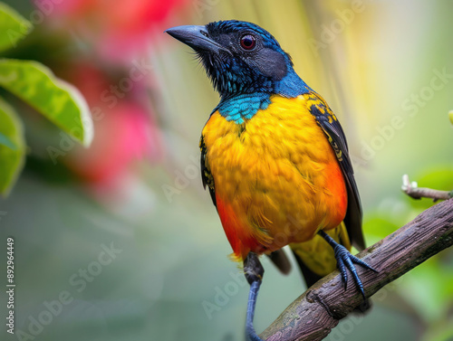 Colorful Bird Perched on a Branch with a Vibrant Background
