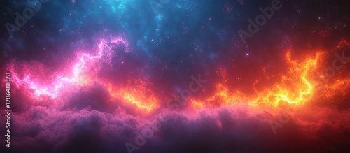 Colorful celestial clouds with vibrant lightning and flames.