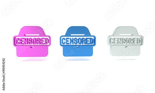 Colorful Censored stamp icon isolated on white background. Minimalism concept. 3D render illustration