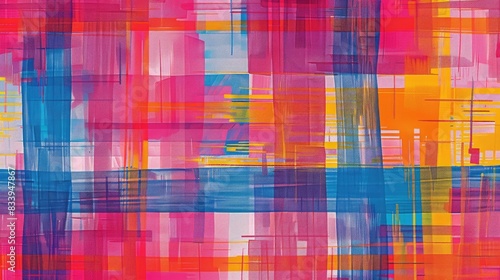Colorful checker pattern with abstract texture and intersecting stripes for wallpaper fabric or fashion design