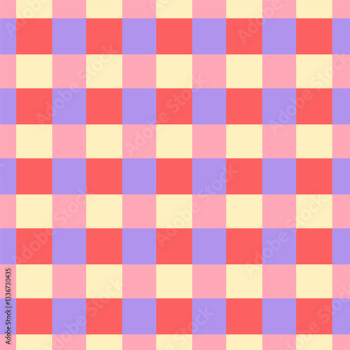 Colorful Checkered Pattern, Red, Purple, Pink on Yellow