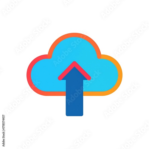 Colorful Cloud Upload Icon: Digital Data Transfer, Modern Design, Isolated on White.