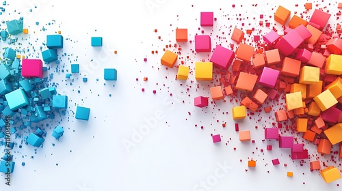 Colorful cubes explosion dynamic vibrant digital abstract art