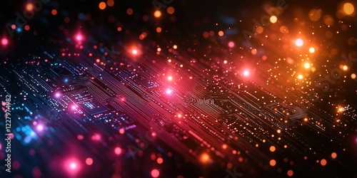 Colorful digital circuit with sparkling lights creating an abstract background