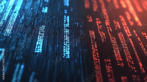 Colorful Digital Data Flow with Binary Code on Dark Background